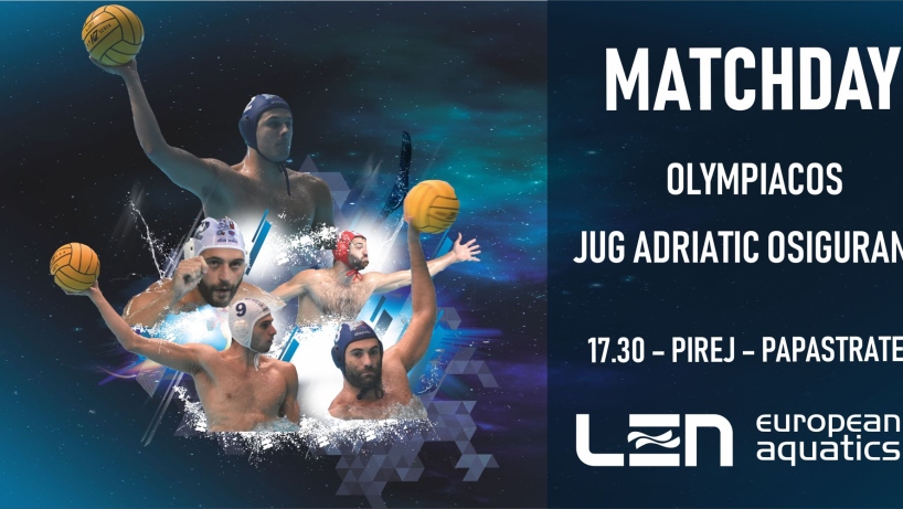Utakmica sedmog kola LEN Lige prvaka između Olympiacosa i Jug Adriatic osiguranja igra se večeras na bazenu Papastrateio u Pireju s početkom u 17,30 sati .